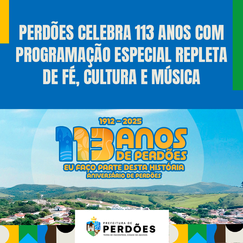 O município de Perdões completa, em 2025, seus 113 anos de emancipação político-administrativa, e a Prefeitura, em parceria com a Câmara Municipal, preparou uma programação especial para comemorar essa data tão significativa para todos os perdoenses.