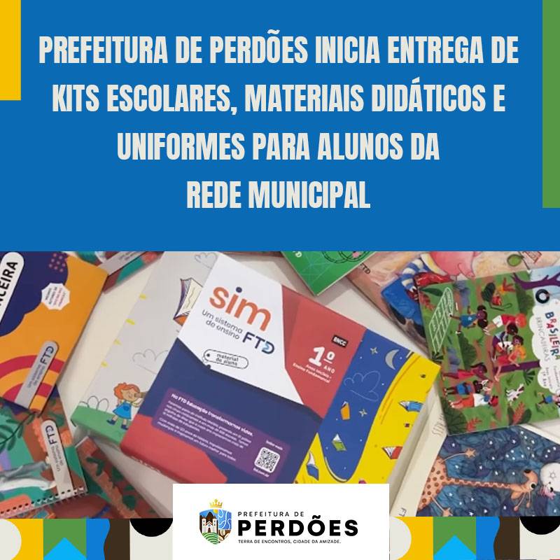 A Prefeitura de Perdões, por meio da Secretaria Municipal de Educação, anuncia a entrega de kits escolares, materiais didáticos e uniformes para todos os alunos da rede municipal de ensino.