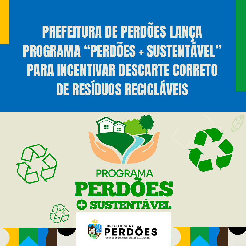 Com o objetivo de promover uma cidade mais limpa, consciente e comprometida com o meio ambiente, a Prefeitura de Perdões deu início ao Programa Perdões + Sustentável, uma iniciativa que visa incentivar a população a realizar o descarte correto de materiais recicláveis, contribuindo para a redução dos impactos ambientais e para a melhoria da qualidade de vida de todos os cidadãos.